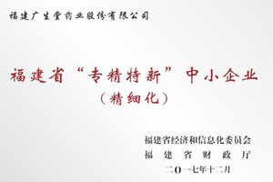 福建省經濟和信息化委員會、福建省財政廳聯合公布了2017年福建省“專精特新”中小企業名單,認定全省224家企業為福建省“專精特新”中小企業,我公司——福建廣生堂藥業股份有限公司被認定為福建省“專精特新”中小企業(精細化)。