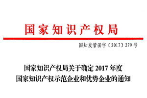國家知識產權局發布了《2017年度國家知識產權示范企業和優勢企業名單》,福建廣生堂藥業股份有限公司榜上有名,成功獲頒“國家知識產權示范企業”榮譽稱號。